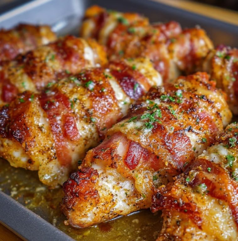 Bacon wrapped garlic Parmesan chicken is my answer whenever I need a truly crowd—pleasing main dish with maximum flavor for minimal work. Juicy chicken wrapped in smoky bacon gets a golden baked finish, and zesty garlic Parmesan sauce soaks into every bite. This is the kind of meal that disappears fast