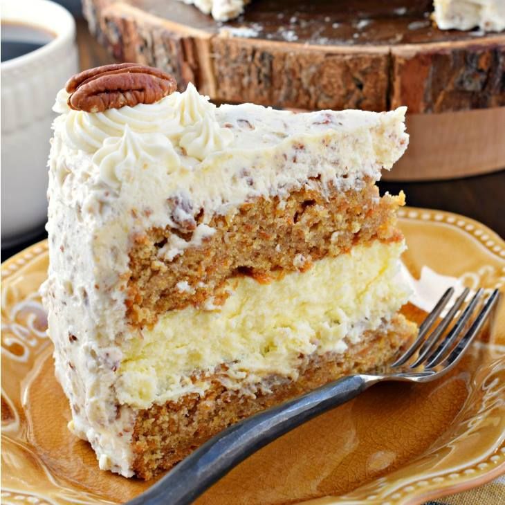 In a greased springform pan, I poured four layers starting by carrot cake mixture then cream cheese mixture, and cake carrots and finally another layer of cream cheese mixture, and baked for 1 hour.