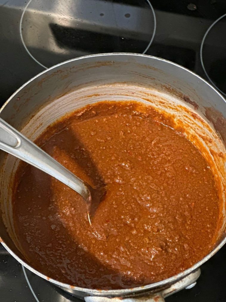 2. Add in broth, tomato sauce, chili powder, cocoa powder, Worcestershire sauce, chili flakes, paprika, soy sauce, onion powder, garlic powder, and cayenne pepper.